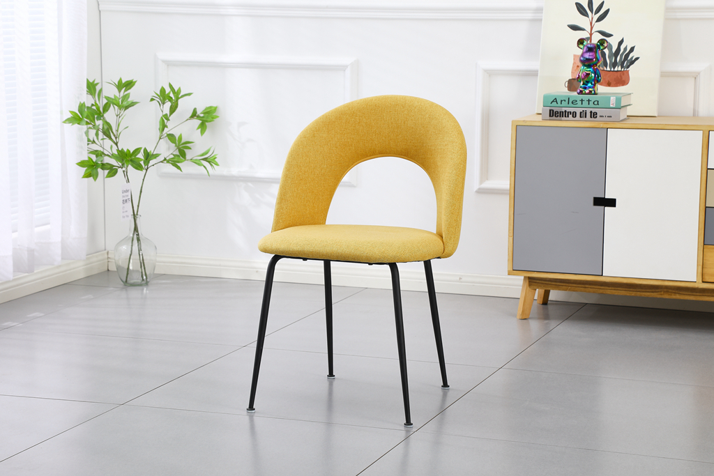 Introducing the Hole Back Mustard Upholstered Dining Chair: A Fusion of Elegance and Comfort.